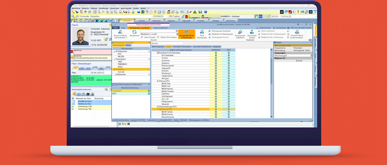 Mit ivoris® security plus arbeiten Sie noch einfacher und sicherer in Ihrer Praxissoftware. Persönliche Zugänge, klare Rechte und die digitale Komfortsignatur sorgen für Transparenz und Entlastung im Alltag – besonders in größeren Praxiseinheiten.